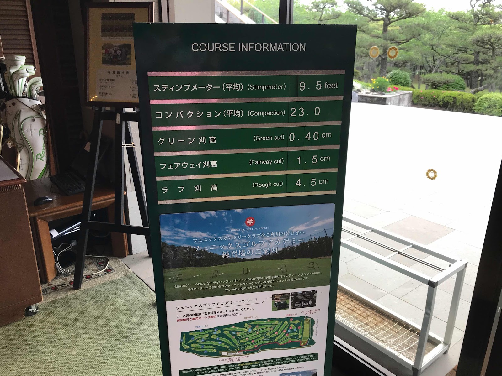 講習会2日目は、朝7:15からトーナメントコース「フェニックスC.C.」のOUT9ホールをコースチェック。