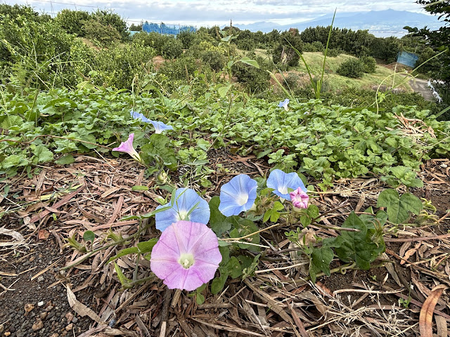 可愛いけどお邪魔な朝顔。みかん園で増えだすと絶やすのが大変!種がどんどん出来て大変な事になります。